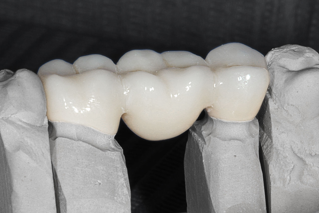 Bei dieser Methode muss Zahnsubstanz von benachbarten Zähnen abgeschliffen werden um Platz für die Pfeilerkronen der Brücke zu schaffen. Dann wird ein Abdruck genommen, um die Brücke im zahntechnischen Labor passgenau anzufertigen. Nach Fertigstellung wird die Brücke auf die präparierten Pfeilerzähne aufgesetzt und permanent befestigt..